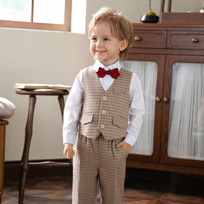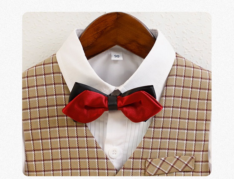 Bộ gồm 3 chi tiết: 1 áo ghile + 1 Quần tây + 1 nơ (Không bao gồm áo Sơ mi)