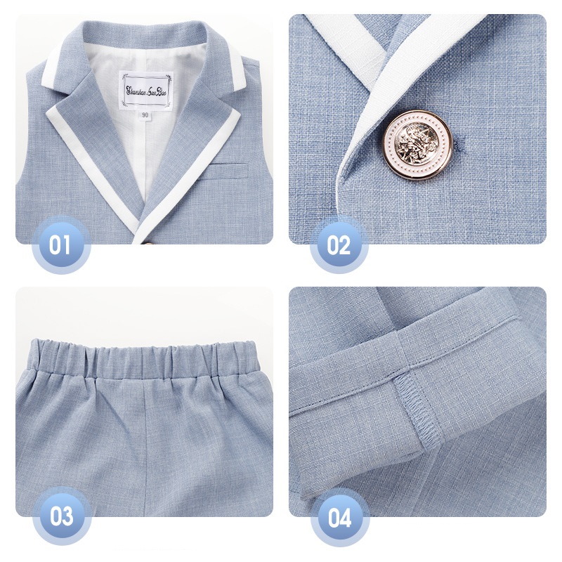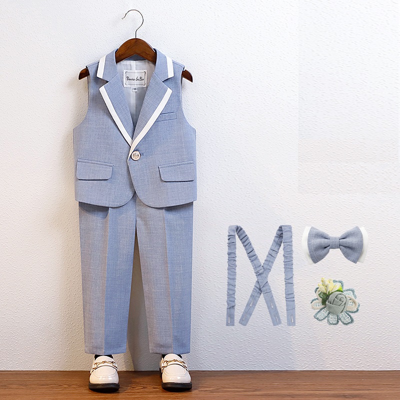 Bộ gồm 5 chi tiết: 1 áo ghile + 1 Quần tây + 1 nơ + 1 hoa + 1 dây yếm (Không bao gồm áo Sơ mi)