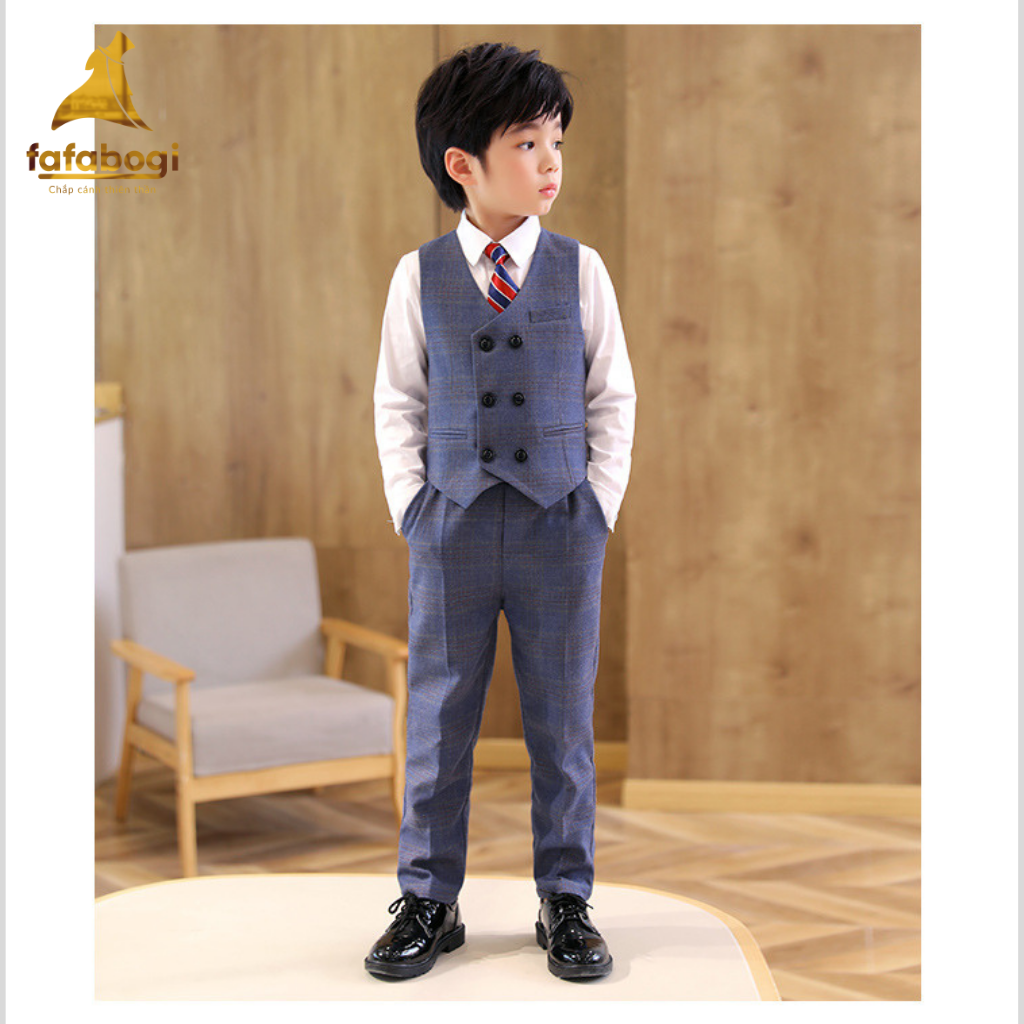 Bộ gồm 5 chi tiết : 1 áo Vest + 1 áo ghile + 1 Quần tây + 1 cavat + 1 ghim cài áo (Không bao gồm áo Sơ mi)
