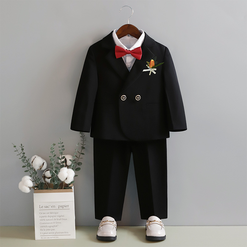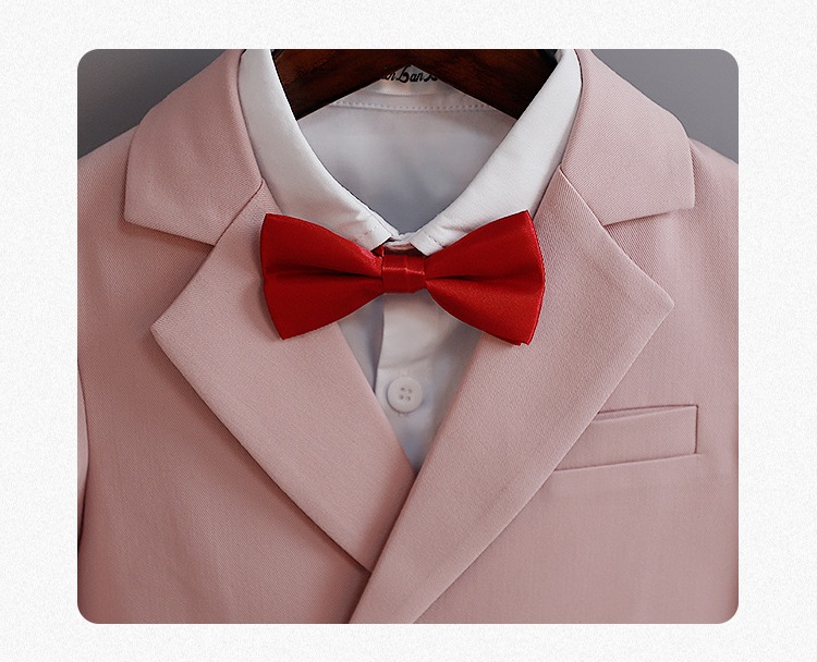 Bộ gồm 4 chi tiết: 1 áo vest + 1 Quần tây + 1 nơ + 1 hoa (Không bao gồm áo Sơ mi)