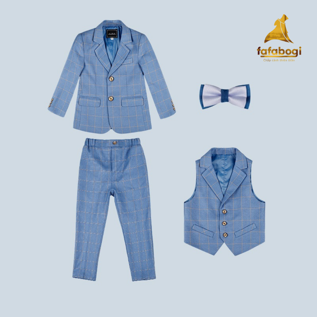 Bộ gồm 4 chi tiết : 1 áo Vest + 1 áo ghile + 1 Quần tây + 1 nơ (Không bao gồm áo Sơ mi)