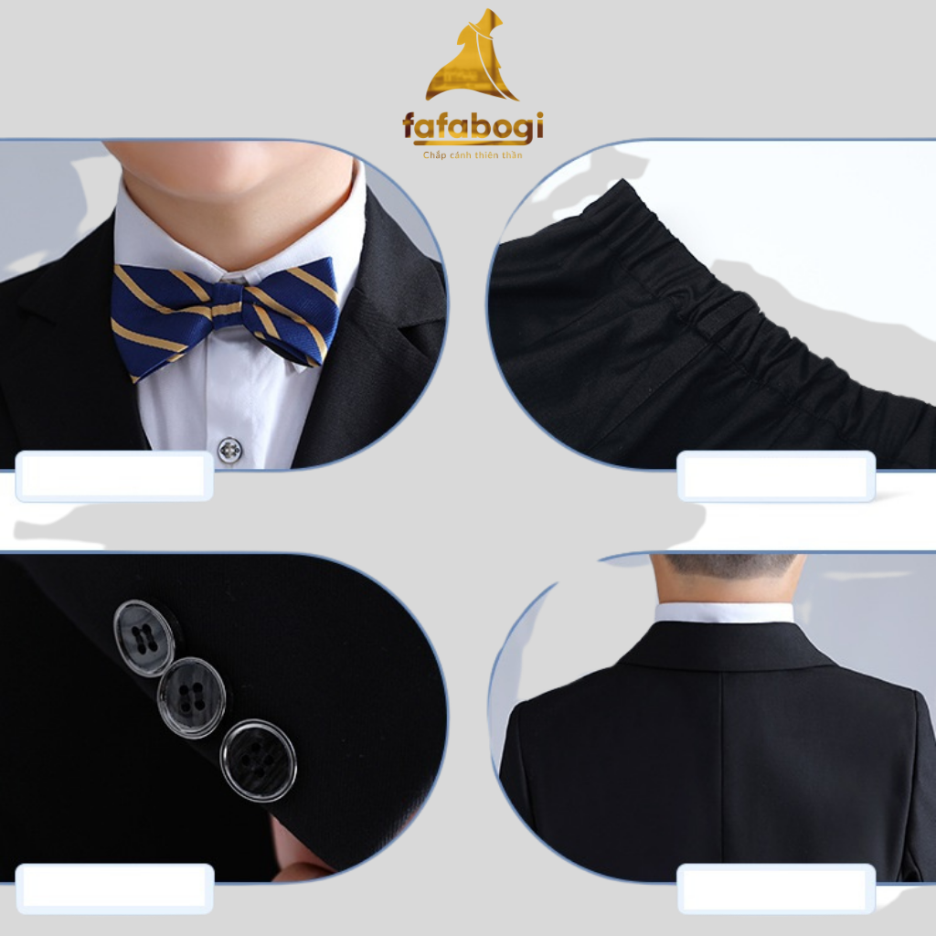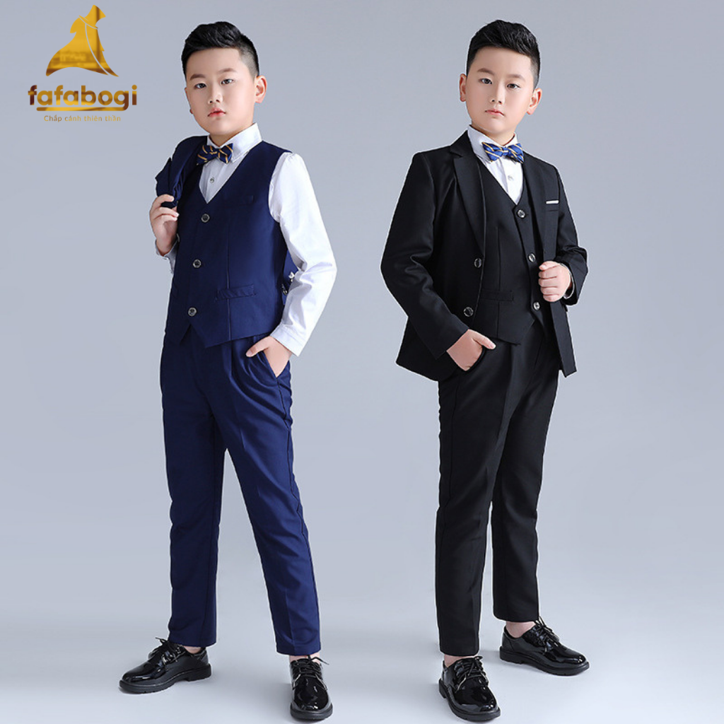 Bộ gồm 4 chi tiết : 1 áo Vest + 1 áo ghile + 1 Quần tây + 1 nơ (Không bao gồm áo Sơ mi)