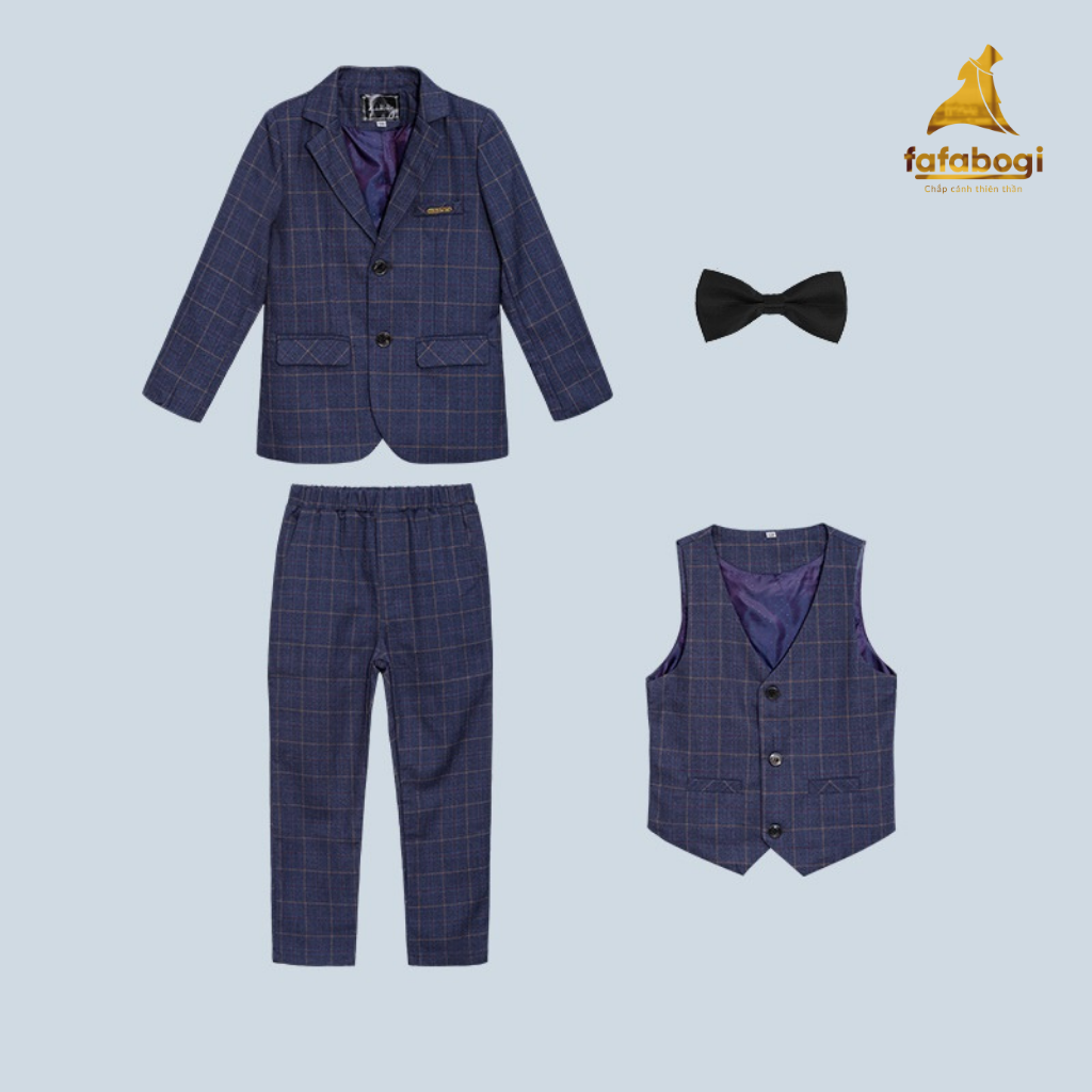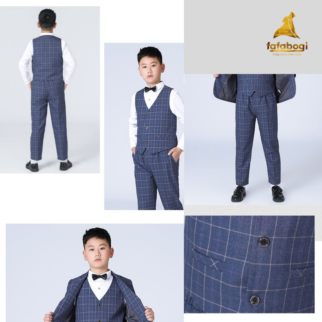 Bộ gồm 4 chi tiết : 1 áo Vest + 1 áo ghile + 1 Quần tây + 1 nơ (Không bao gồm áo Sơ mi)