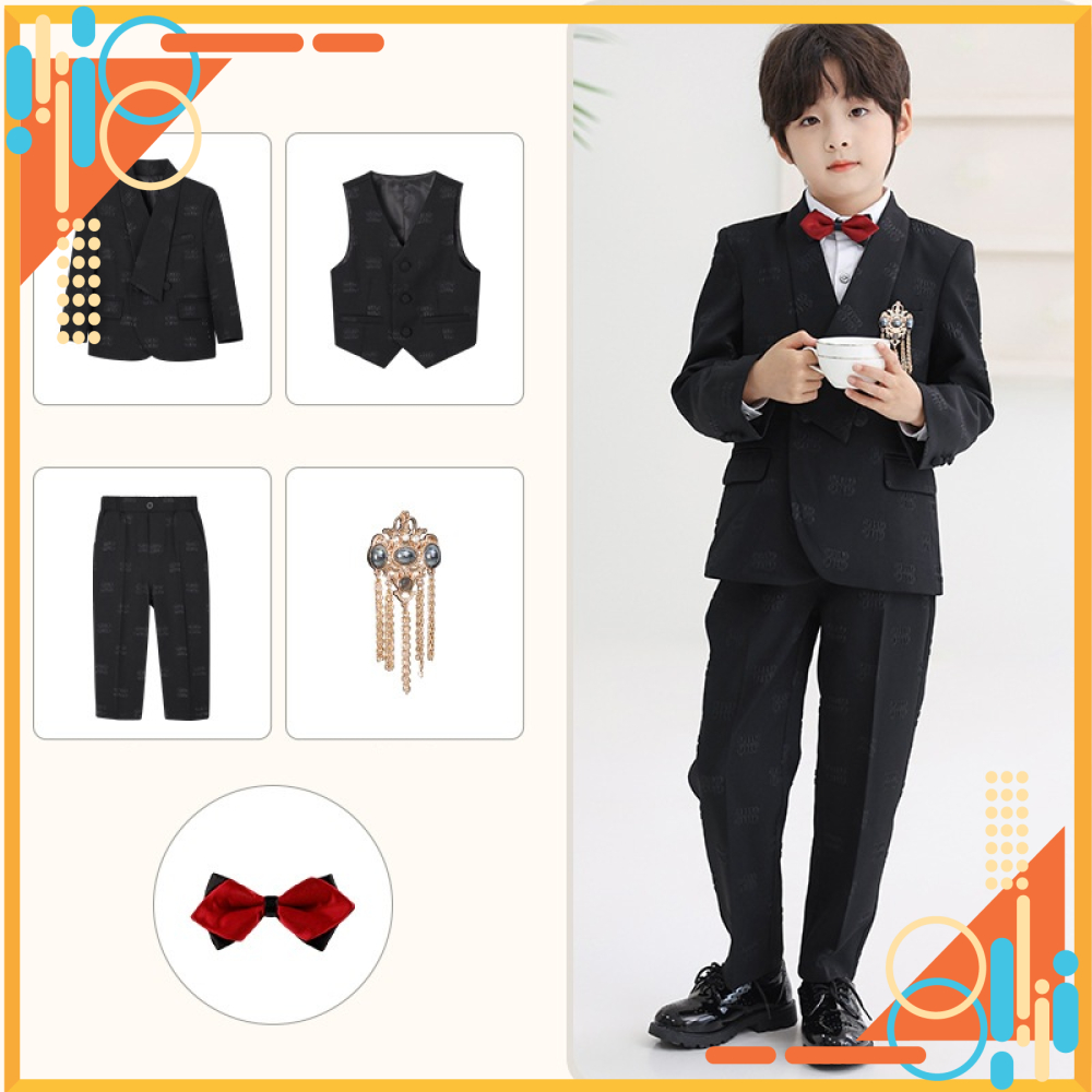 Bộ gồm 5 chi tiết : 1 áo Vest + 1 áo ghile + 1 Quần tây + 1 nơ + ghim cài áo (Không bao gồm áo Sơ mi)