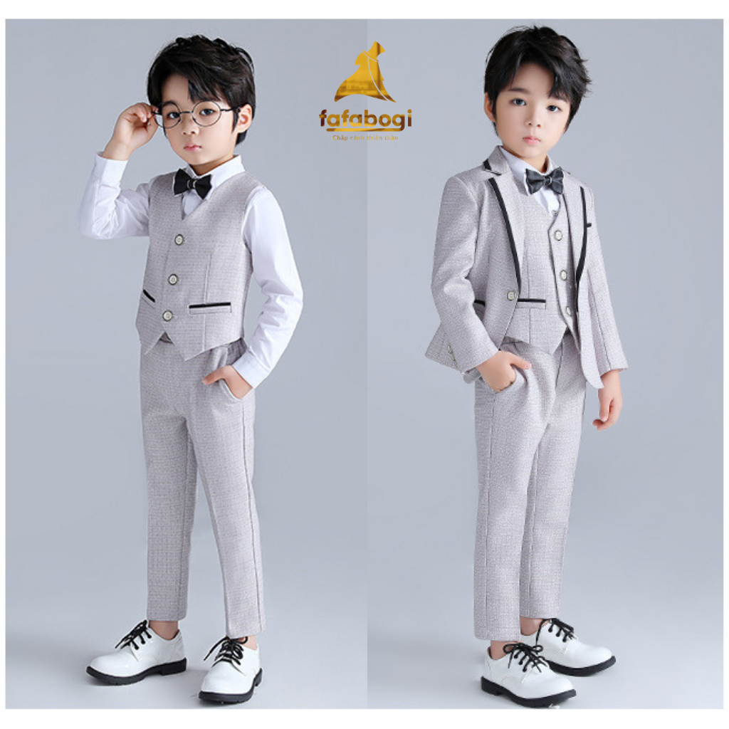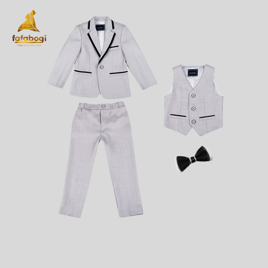 Bộ gồm 4 chi tiết : 1 áo Vest + 1 áo ghile + 1 Quần tây + 1 nơ (Không bao gồm áo Sơ mi)