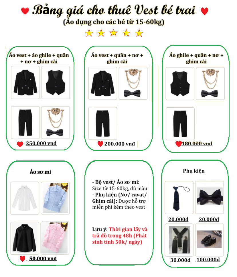 ❤️CHÍNH SÁCH CHO THUÊ VEST BÉ TRAI
